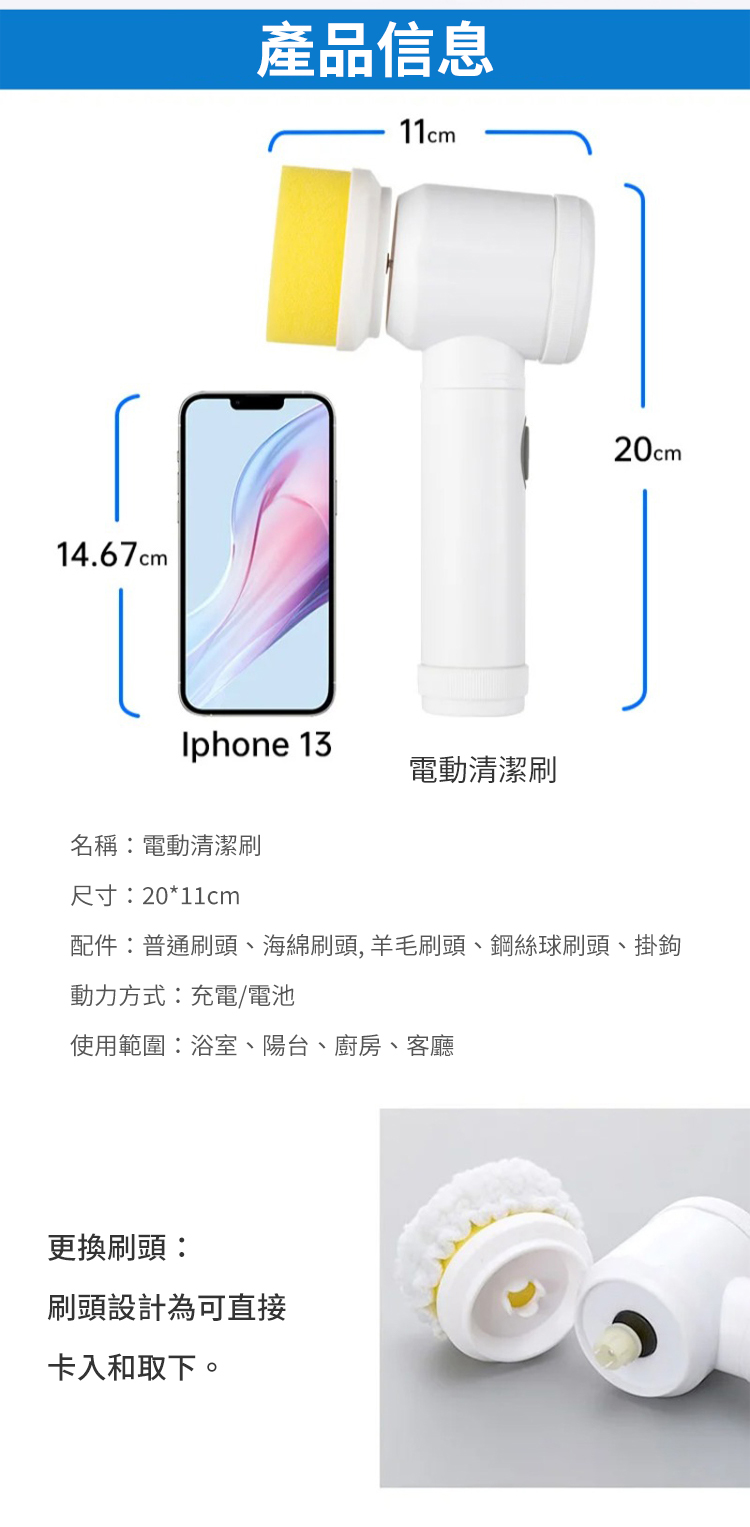家用5合1浴室洗碗槽電動清潔刷