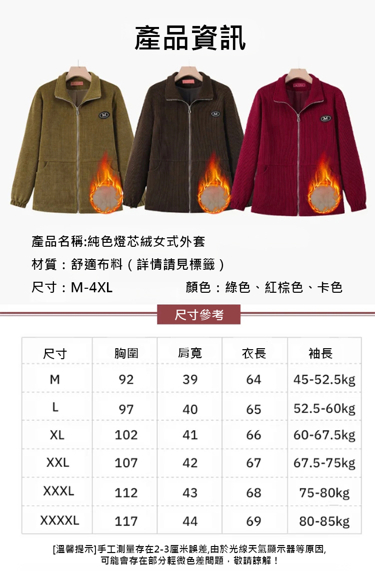 純色燈芯絨女式外套