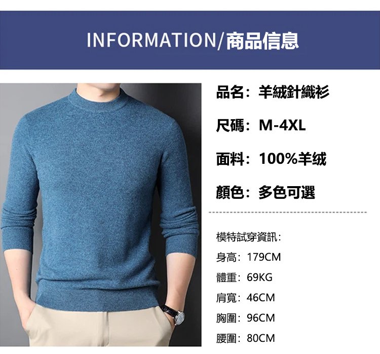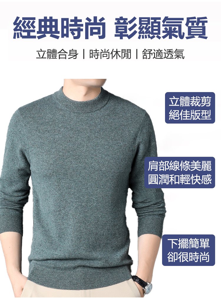 【專櫃品質 一件穿10年】輕奢男士半高領羊絨針織衫