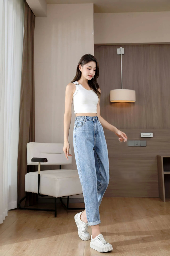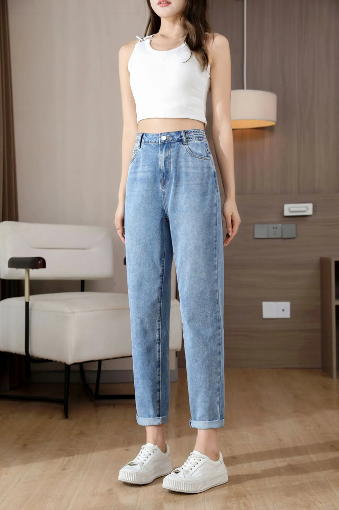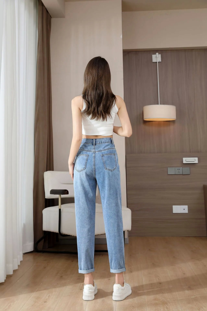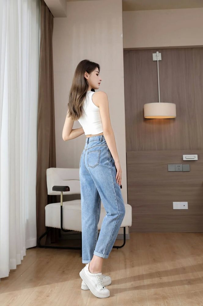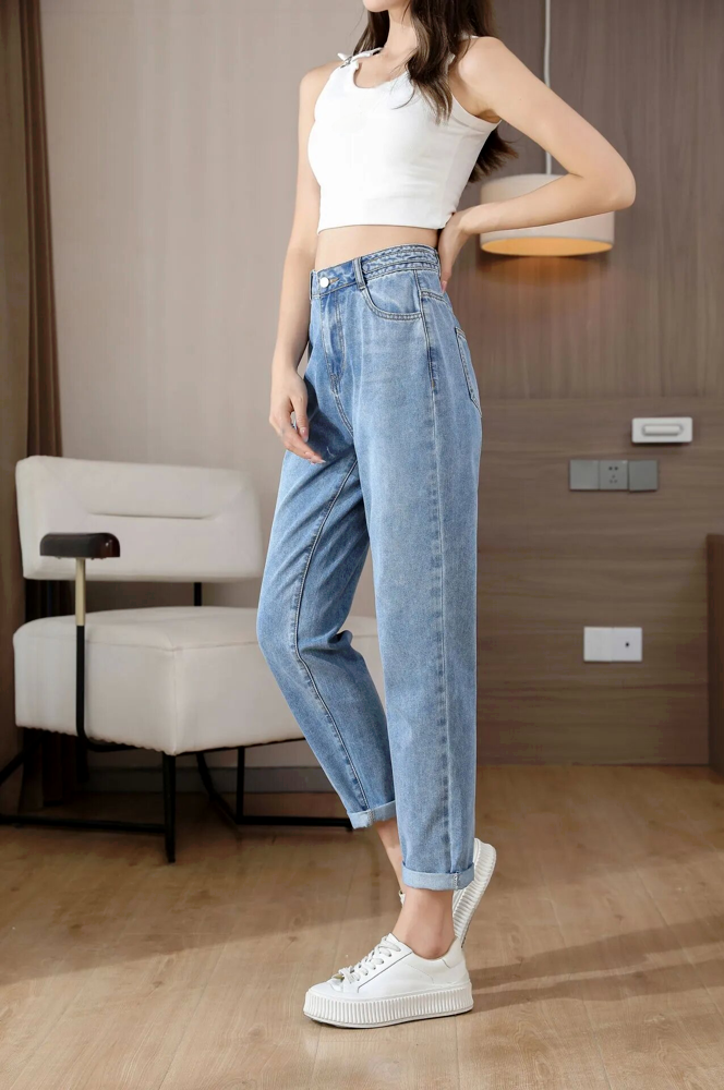高腰九分休閒牛仔褲