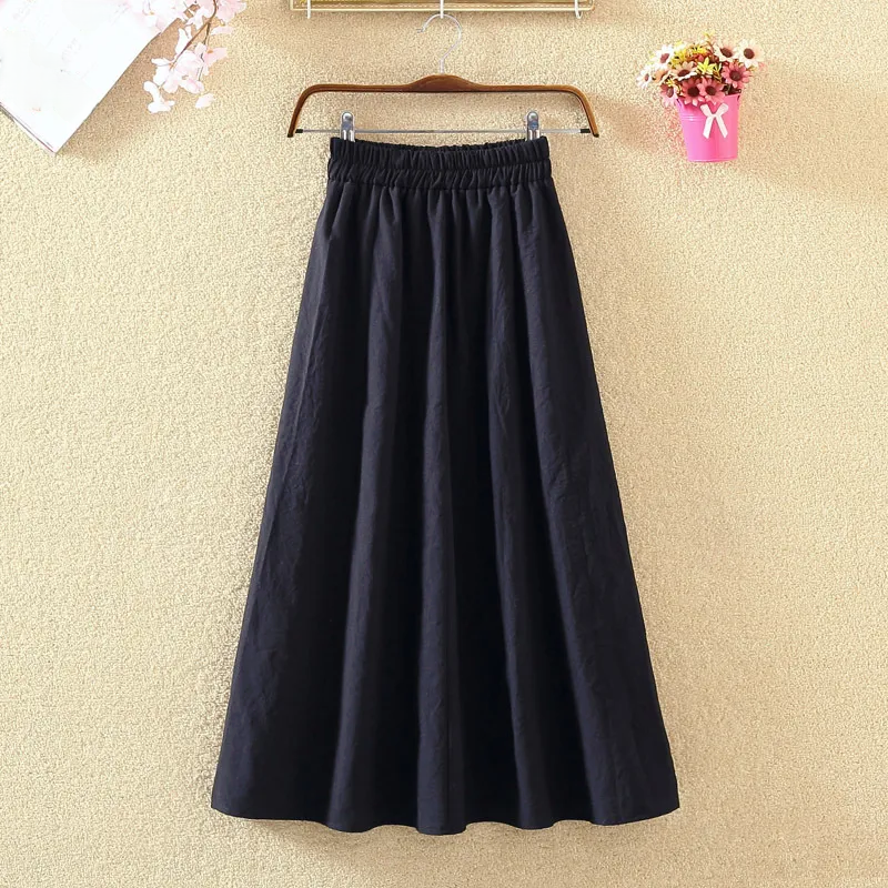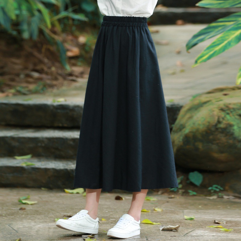 中長款高腰裙棉麻半身裙