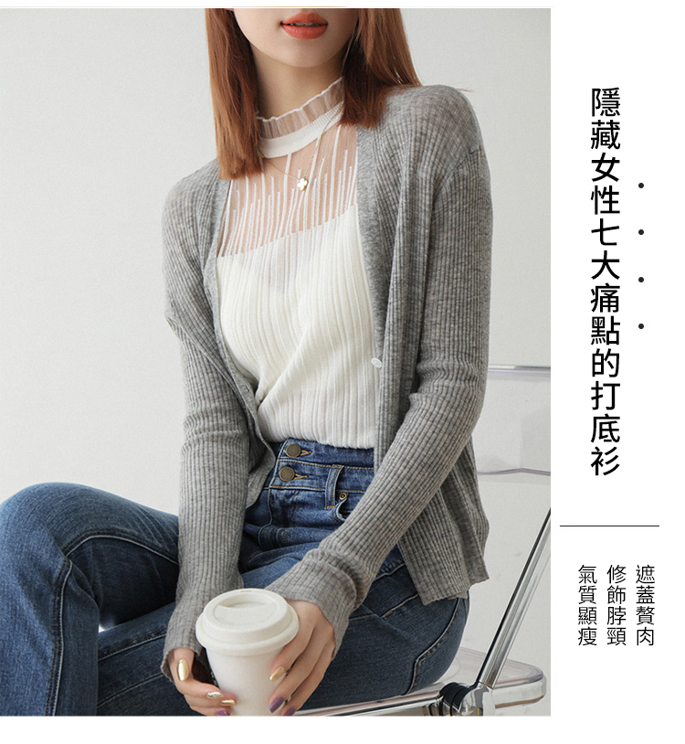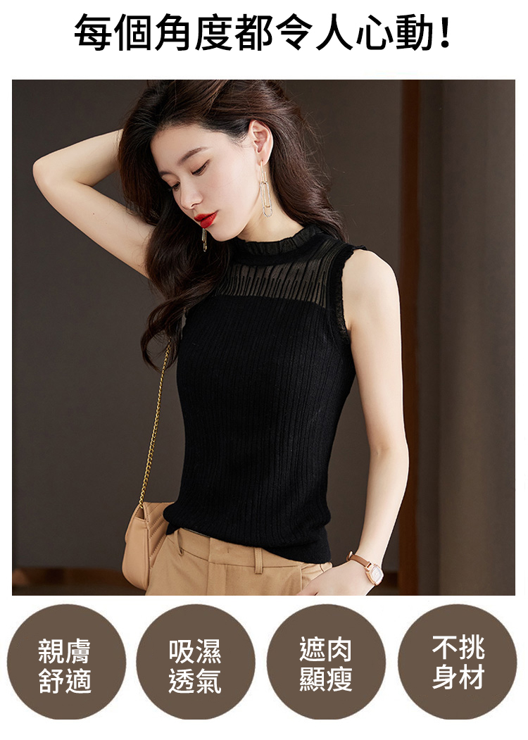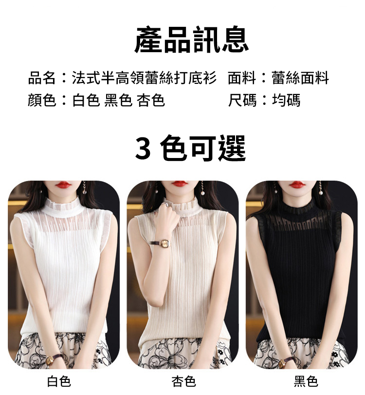 法式半高領蕾絲打底衫